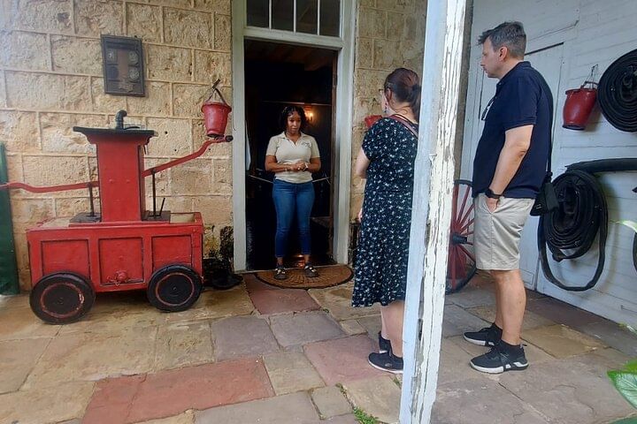 A 30-45-minute drive from the city of Montego Bay takes you to the Greenwood Great House, sitting on the hillside overlooking the Greenwood community and the Caribbean Sea. A tour guide will meet you at the entrance of the property and escort you to the front door of the house where a fire wagon with leather buckets and hose sits in case of a fire.
